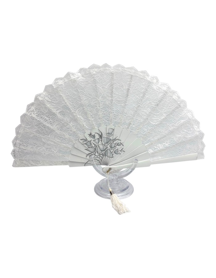 Abanico artesanal pintado a mano y encaje de blonda.
